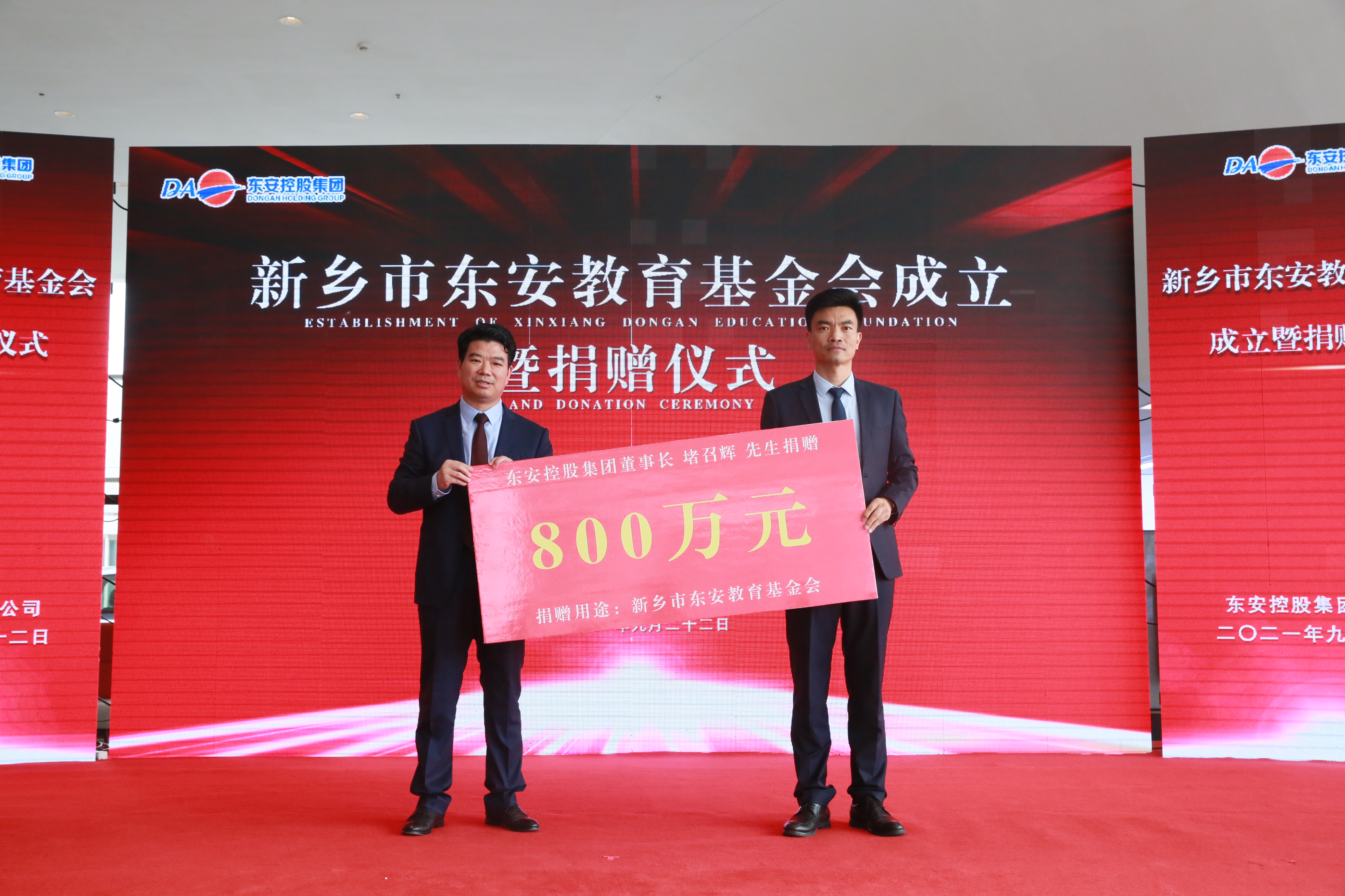 東安控股集團(tuán)董事長(zhǎng)、東安教育基金會(huì)理事長(zhǎng)堵召輝,現(xiàn)場(chǎng)向新鄉(xiāng)市東安教育基金會(huì)捐款800萬(wàn)元人民幣作為啟動(dòng)資金。