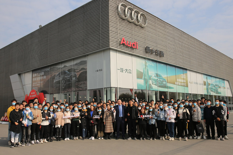 中午11點(diǎn)鐘,同學(xué)們來到東新奧迪4S店進(jìn)行參觀學(xué)習(xí),銷售總監(jiān)蔣振勝給廣大同學(xué)們講解了奧迪的各款車型、服務(wù)接待流程、售后接待流程,又帶領(lǐng)大家進(jìn)入售后保養(yǎng)車間進(jìn)行參觀學(xué)習(xí),參觀學(xué)習(xí)期間同學(xué)們對奧迪的服務(wù)和售后贊嘆不已,并表示今天收獲很多,更加堅(jiān)信了學(xué)習(xí)的興趣和動力。