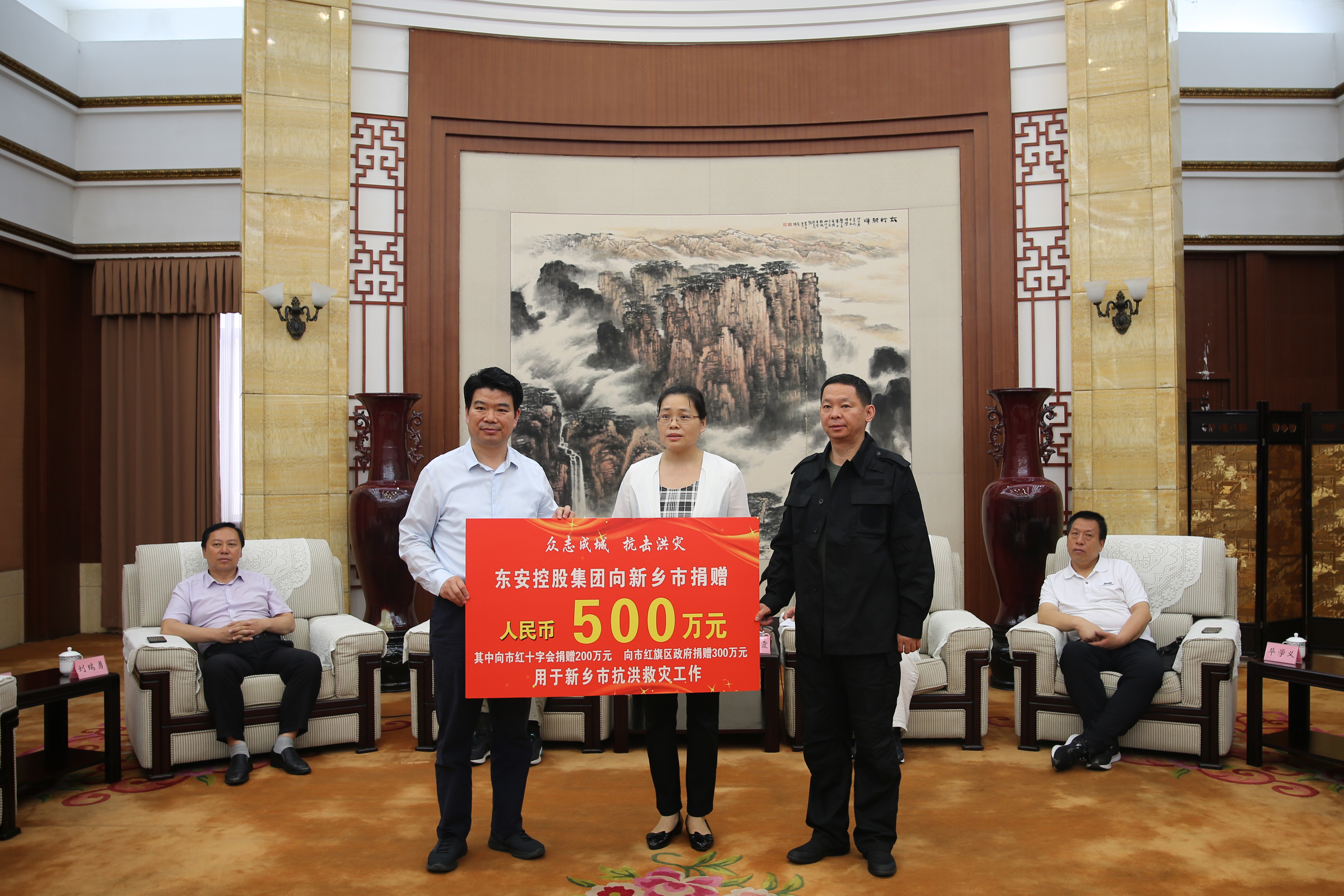 7月20日,河南多地出現(xiàn)連續(xù)強降雨天氣,洪水漫灌,城區(qū)內(nèi)澇,人民群眾生命財產(chǎn)安全受到嚴重威脅。7月23日上午,省人大代表、市人大常委、東安控股集團董事長堵召輝代表集團,向新鄉(xiāng)市捐款500萬元,緊急支援地區(qū)防汛救災工作。